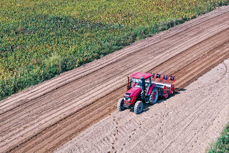 • 平遙縣寧固鎮(zhèn)豐依村村民們正在機(jī)播小麥